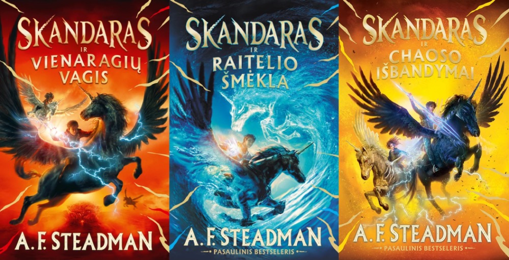A. F. Steadman 3 knygų rinknys: Skandaras ir vienaragių vagis + Skandaras ir raitelio šmėkla + Skandaras ir Chaoso išbandymai