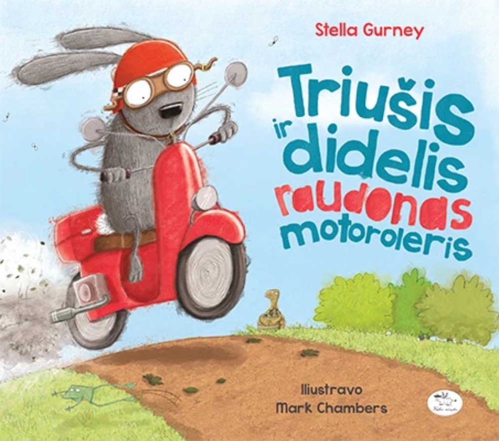 Triušis ir didelis raudonas motoroleris