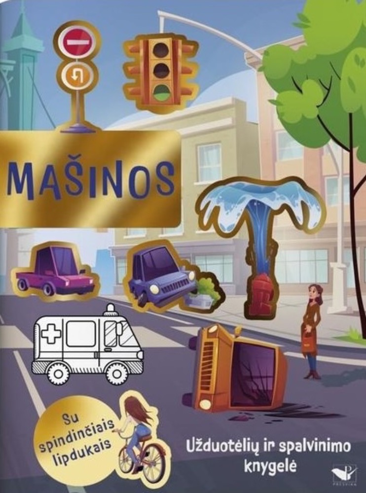 Mašinos. Užduotėlių ir spalvinimo knyga su spindinčiais lipdukais