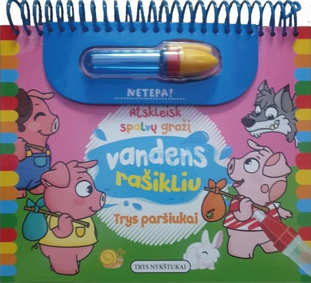 Trys paršiukai. Atskleisk spalvų grožį vandens rašikliu
