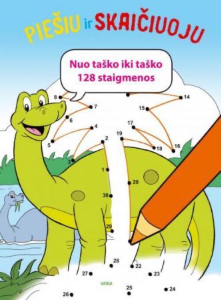 Nuo taško iki taško. Dinozaurai. Piešiu ir skaičiuoju