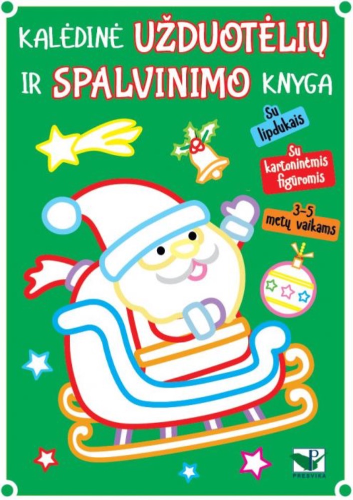 Kalėdinė užduotėlių ir spalvinimo knyga su lipdukais ir kartoninėmis figūromis. 3-5 metų vaikams