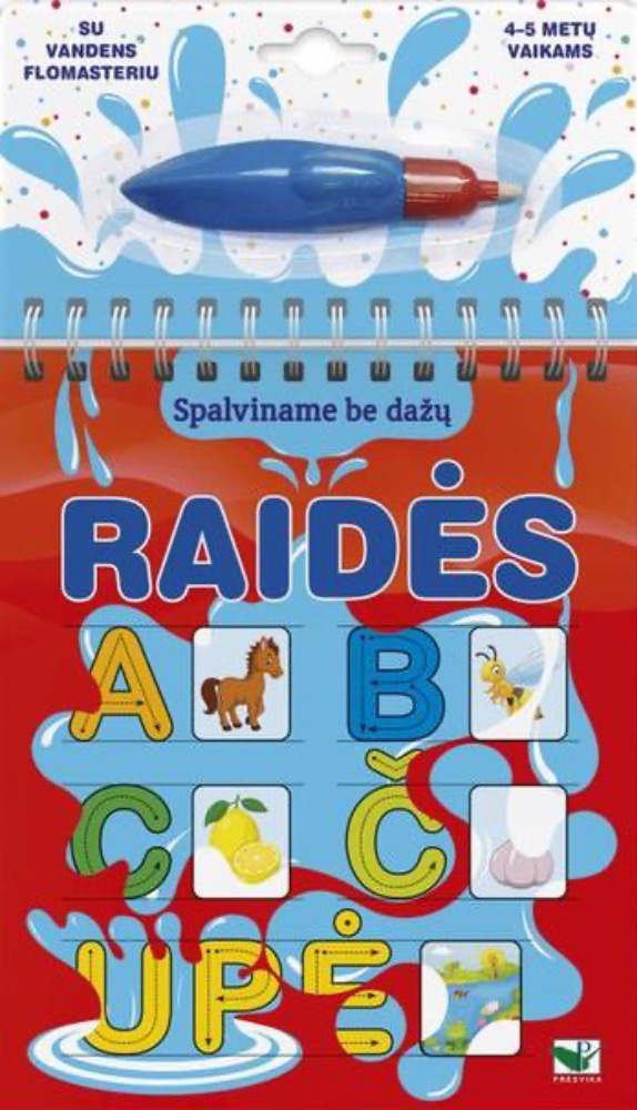 Spalviname be dažų. Raidės (su vandens flomasteriu)